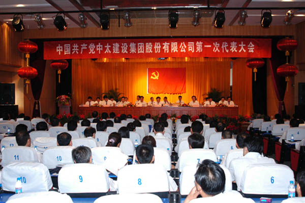 9月25日上午9時,在激昂的《國際歌》聲中,中共中太建設集團股份有限公司第一次代表大會在中太大廈隆重召開。代表集團公司21個黨支部、402名黨員的115名黨員代表出席會議。市國資委黨委、市建設局黨委的領導出席會議并講話。集團公司各下屬單位非代表黨員副職以上領導和總部機關、三個事業部的全體非代表黨員共180多人參加了會議。楊功元同志致開幕詞;張國印同志主持會議。