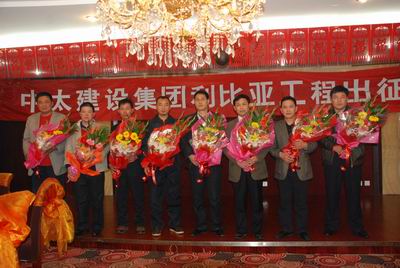 儀式上,張總對五公司成功進軍利比亞建筑市場表示祝賀,他們的一舉一動、一言一行,不僅代表著中太,代表著河北和廊坊,更代表著中國企業(yè)的形象。希望他們在海外施工中充分展示中太人的精神風貌,積累經(jīng)驗,打造精品工程,為集團公司未來拓展海外市場打下良好的基礎,集團李主席和全體員工期待著他們勝利凱旋。