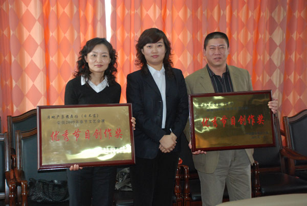 隨后,工會主席鐘崇鶴、副主席張娟分別為2009年春節(jié)職工文藝匯演受獎單位和個人頒發(fā)了獎牌和獎杯。