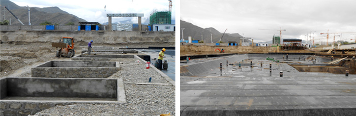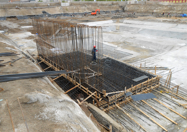 中太建設(shè)集團(tuán)第十一工程局自4月份成立項(xiàng)目部以來,進(jìn)行了大量精心的前期準(zhǔn)備工作,包括員工生活區(qū)的搭建、施工隊(duì)伍的調(diào)度組織、工程設(shè)計(jì)圖紙的優(yōu)化落實(shí)、施工區(qū)外圍廣告墻的設(shè)計(jì)制作及安裝等。截至9月中旬,降水工程已開始全面降水、樁基工程也已全部施工完成,特別是4#-11#樓已完成獨(dú)立基礎(chǔ)和筏形基礎(chǔ)的土方開挖,其中4#-7#樓的混凝土墊層已澆筑、獨(dú)立基礎(chǔ)的磚胎膜正在砌筑。地下室防水工程也已開始施工,其中4#樓防水已大面積完成,6#、7#塔吊基礎(chǔ)已完成鋼筋綁扎,1#樓獨(dú)立基礎(chǔ)土方已開挖并已完成90%工程進(jìn)度。