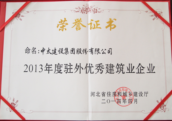 日前,由河北省住房和城鄉建設廳主辦的關于評選2013年度駐外優秀建筑業企業和優秀項目經理的活動結果揭曉,中太建設集團以突出的綜合實力和良好的社會口碑,被授予“2013年度駐滬優秀建筑業企業”榮譽稱號,項目經理石鋒德以優異的工作成績和惟以求真的工作態度被光榮評選為“2013年度駐滬優秀項目經理!