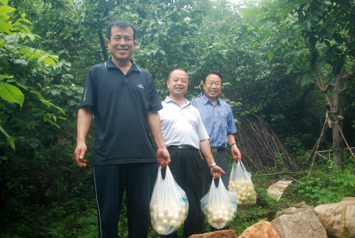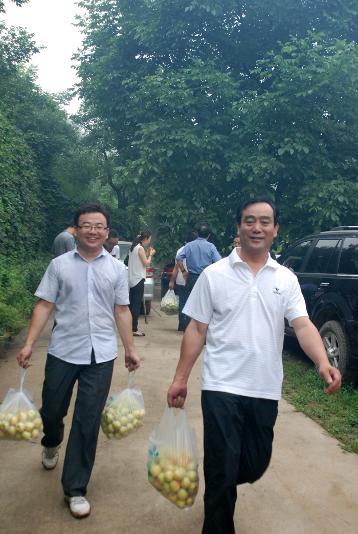 從京承高速公路下道,兩輛大巴車(chē)沿著崎嶇山路緩慢行駛。山道兩側(cè)灌木郁郁蔥蔥,置身于這天然氧吧,清新的空氣順暢地能讓人一下子呼吸到了丹田而心神氣爽。一路上,路邊采摘的果園比比皆是。空氣中那果實(shí)散發(fā)出的清香,直入心脾,令人口舌生津。
