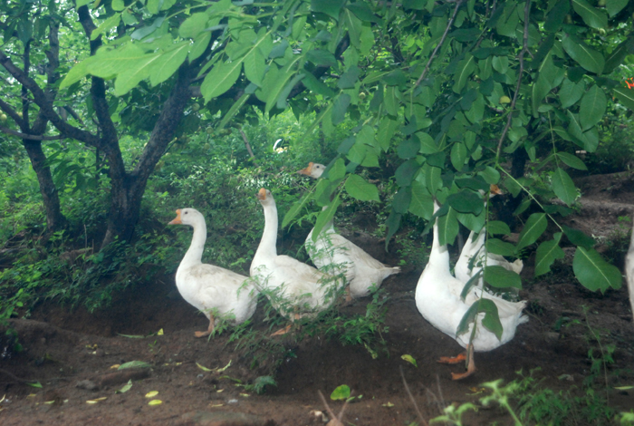 據(jù)第八工程局工作人員介紹,此采摘處約有20畝果樹(shù)林地。山上種植著杏兒、桃兒和核桃。山下院內(nèi)菜園里,種植著施用農(nóng)家肥的各類時(shí)蔬和植物。以蟲(chóng)兒、草兒為食、自由散養(yǎng)的雞鴨悠閑漫步在山林中,好一派恬靜如詩(shī)、優(yōu)美如畫(huà)的田園風(fēng)光。