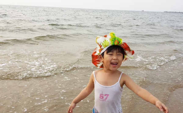 拍了照片后,突然讓我感覺像文清同學(xué)媽媽去澳門時(shí)住在海景房拍的海景照片! 看完海景就開始了匆忙的換泳衣準(zhǔn)備下海,海景公寓的好處就是出來小區(qū)走上自己的棧道就是小區(qū)的私家海灘,非常干凈。近距離的接觸大海,吹著涼爽的風(fēng)(天氣多云,溫度在29度),讓我們一行幾個(gè)馬上開懷起來,每個(gè)人的興奮在臉上流露。孩子是最興奮的,跑到海邊上,任憑海浪一層層的打過來(這天風(fēng)并不大),孩子說:“媽媽,你看大海碰我了!”竟然用起了擬人句,把大海打過來的浪花比作在“碰”,這字用的多么美妙啊!我一邊欣賞著美景一遍在咂摸著這話,贊嘆著孩子的天真和用詞之妙。我們真的跳入大海浸泡的時(shí)候,舅舅在照顧著她,突然一個(gè)浪打在了孩子的頭上,孩子嚷著:“我要離開大海了”,這是在身邊的舅舅轉(zhuǎn)告我的,我在想孩子真是長大了,會(huì)表達(dá)很多個(gè)人的感情了,“啊,我要離開大海了”是一個(gè)陳述句,但是好像是表達(dá)著一種不舍得離開但是有不得已的感情,她很想在大海里再待一會(huì),但是因?yàn)樗焕嘶ù驖窳祟^發(fā),依她個(gè)人的膽量可能害怕了,所以說了句“啊,我要離開大海了”,孩子的成長讓我們自覺不自覺真切感受到了。然后她自己在海灘玩沙子,挖了大大的沙坑,每當(dāng)海浪沖過來的時(shí)候,總是興奮的說:“媽媽大海幫我大忙了,還給其他家人也興奮的嚷嚷,大海可是幫了大忙了”。當(dāng)我問她到底幫了什么忙時(shí),她說:“大海給我的沙坑送來了水啊”(估計(jì)是她不用拿著自己的小碗去海邊舀水了)。我感嘆著女兒的天真浪漫和快樂興奮,內(nèi)心在想:帶著孩子出來玩玩是多么對(duì)的選擇,大自然的風(fēng)光的確是能刺激人的靈感,說了那么多令我平時(shí)聽不到的妙字妙語。這趟短途旅行意義非凡!